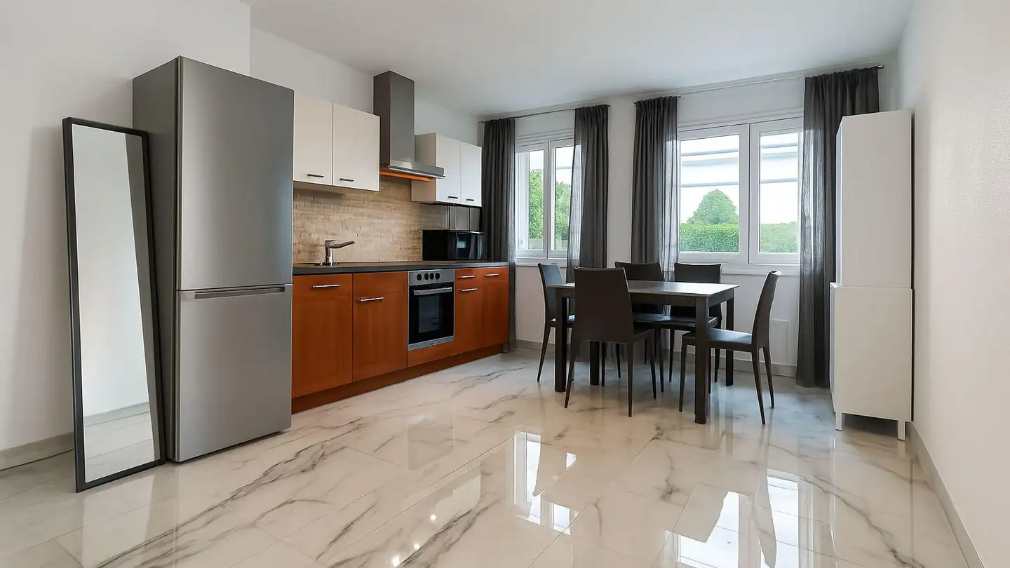 In un edificio vicino al centro e ai servizi. Vicino ai negozi e a soli 10 minuti in auto dagli accessi autostradali direzione Ginevra, Vallese e Friburgo e 10 minuti a piedi dalla stazione. Il lungolago e i suoi moli splendidamente fioriti si trovano a pochi passi.