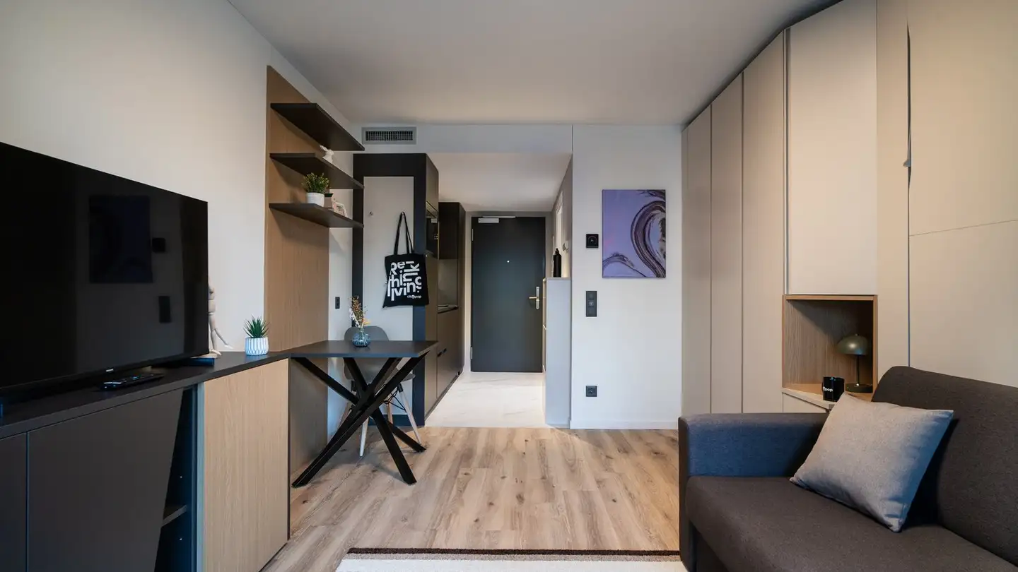 Questo appartamento combina comfort abitativo moderno, arredi di alta qualità e una posizione imbattibile vicino alla città di Zurigo. L'ampio soggiorno luminoso con cucina aperta è ideale per gli amanti della cucina e naturalmente anche per rilassarsi. La cucina aperta dal design moderno e con un'adeguata superficie di lavoro è adatta per utensili da cucina di ogni tipo. Le due camere con le grandi finestre che lasciano entrare molta luce diurna rendono l'appartamento molto piacevolmente lumino...