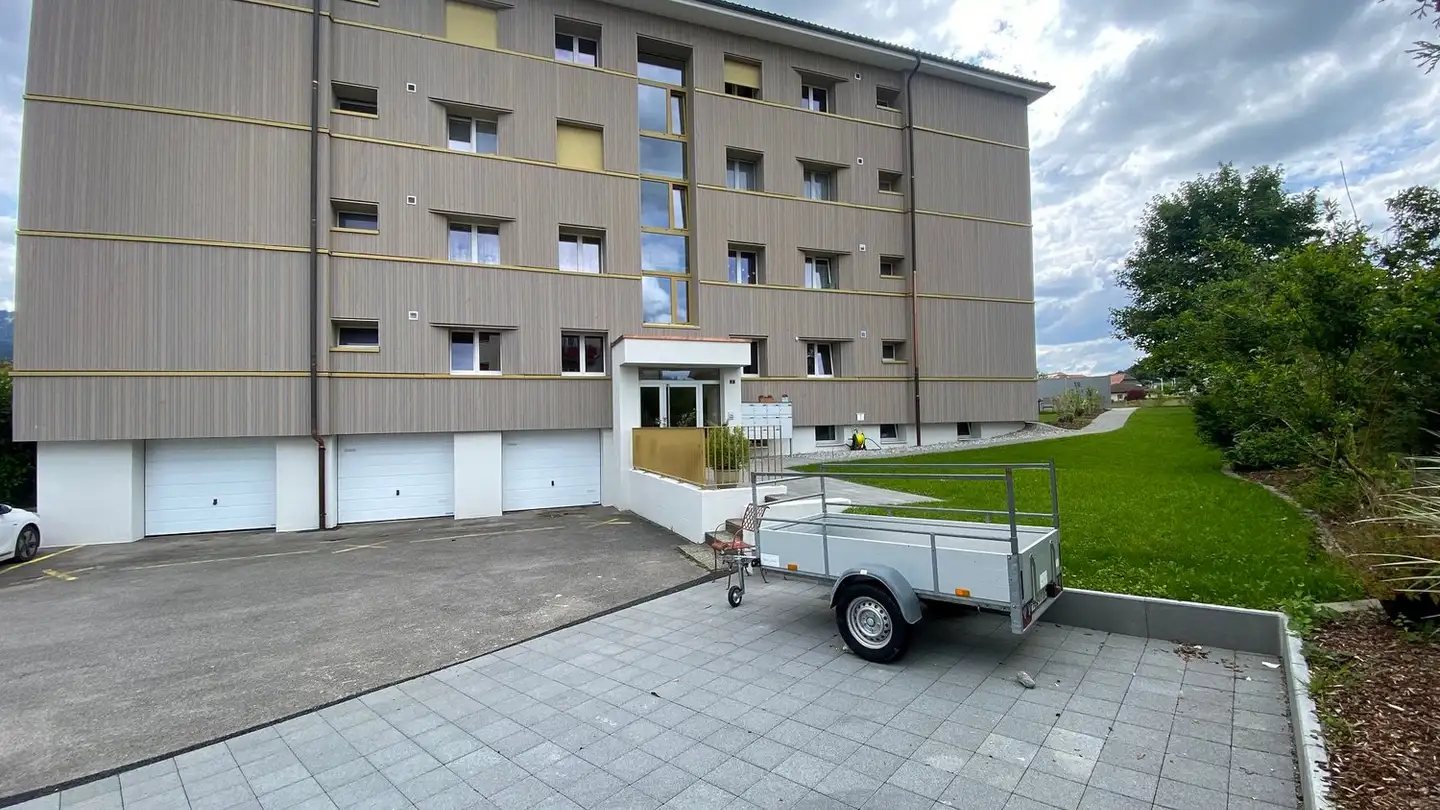 Offriamo questo appartamento di 4,5 stanze al piano terra in affitto a partire dal 1 aprile 2026, situato nel edificio E di Prairie 2 a Marly. È composto come segue: