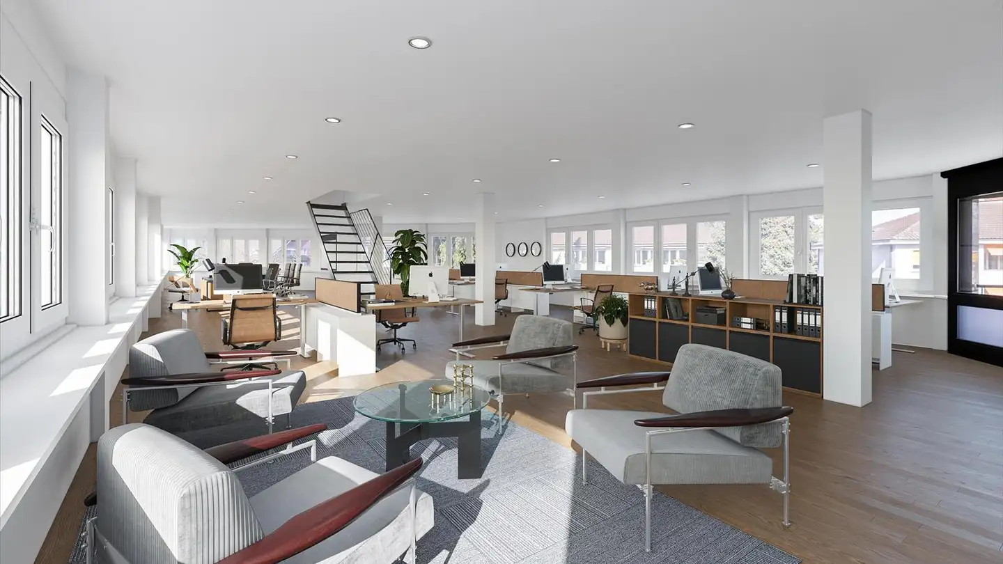 Affittiamo un locale commerciale affascinante e ben curato in una posizione centrale a Münsingen, ideale per vari usi commerciali.