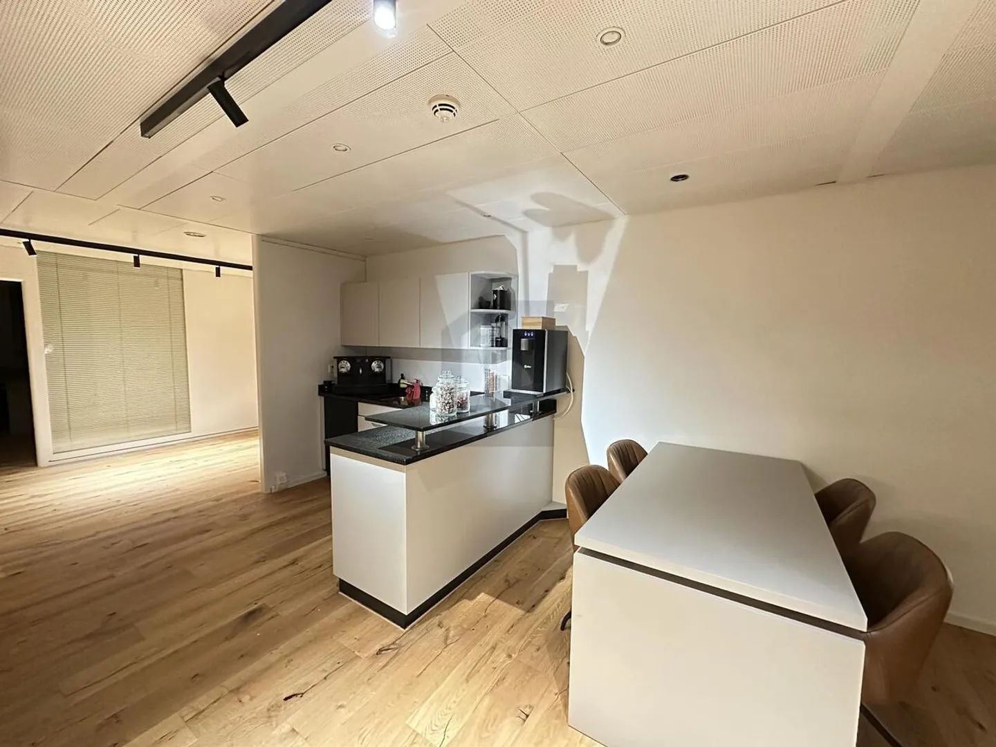 Lo spazioso ufficio a Dättwil AG è ideale per le aziende che cercano una posizione centrale con eccellenti collegamenti di trasporto. Il pavimento in legno di alta qualità e le pareti appena dipinte creano un'atmosfera moderna. Grandi finestre e un'altezza del soffitto di 2,6 m creano un ambiente di lavoro luminoso e piacevole. La cucina moderna e aperta è perfetta per le pause. Un ascensore e l'accesso senza barriere offrono comfort. Sono disponibili posti auto sotterranei e all'aperto per dipe...