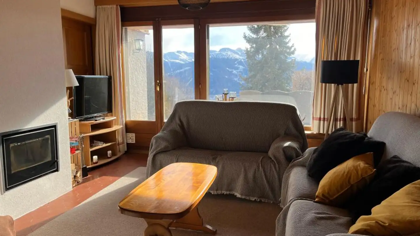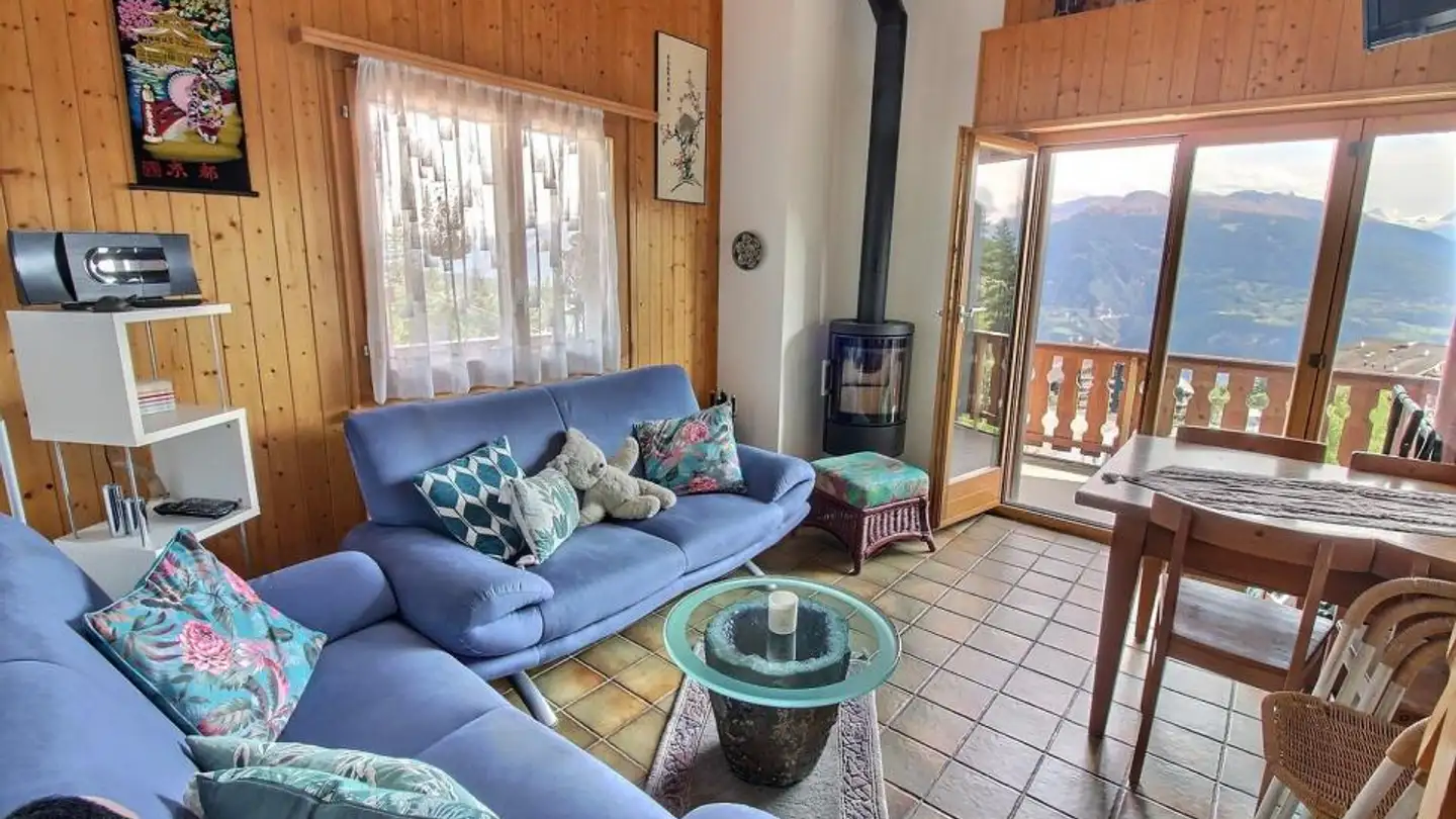 Cozy appartement 3.5 pièces *** situé au secteur de la télécabine à louer à la semaine pouvant accueillir 4 - 5 personnes. Situé au dessus de la télécabine à 3 minutes à pied, il est situé au 3ème et dernier étage d'une petite résidence sans ascenseur et se compose de la façon suivante:- la cuisine ouverte récemment rénovée avec plaque vitro-céram, four et frigo, lave-vaisselle, machine à café Krups avec capsules Nespresso- pièce à vivre : salon/séjour avec télé et poêle à bois, balcon exposé plein Sud avec une vue magnifique sur les Alpes valaisannes, une mezzanine avec un lit simple- une chambre double avec un lit double- une 2ème petite chambre avec un lit superposé- une salle de bain avec baignoire, lavabo , toilettes et machine à laver Un garage est mis à disposition lors de la location de l'appartement. Prix de la semaine de location avec nettoyage final et linge inclus: Sfr.