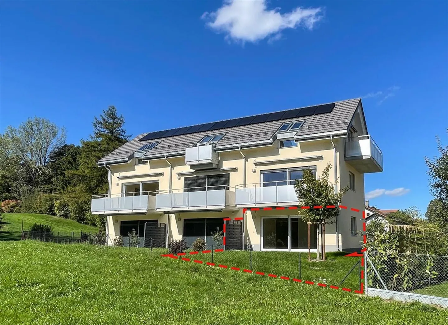 Situato su un lotto di 806 m2, l'edificio gode di un'ottima posizione esposta a sud-ovest con un'esposizione solare ottimale in un ambiente verde.