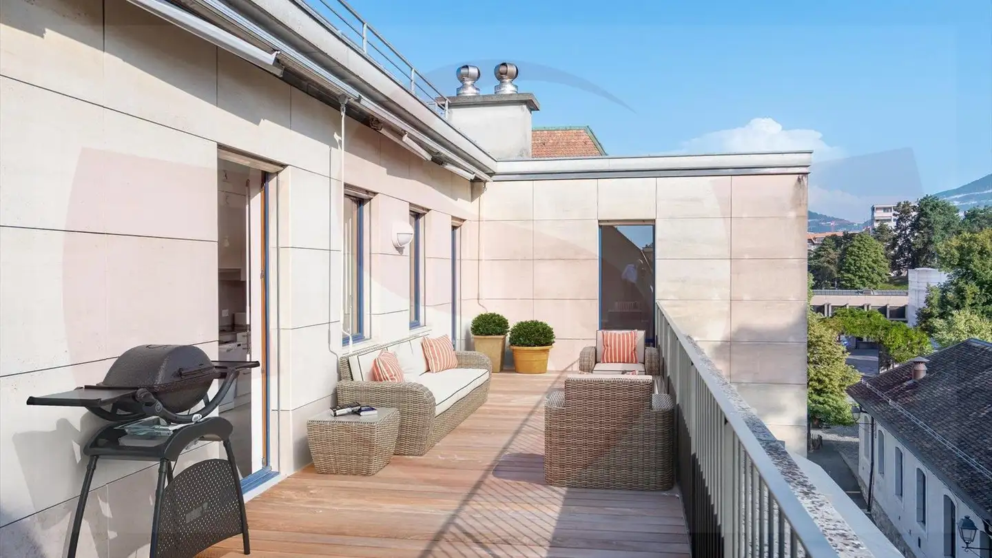 Questo magnifico appartamento di 6 locali al 2° piano di un edificio d'epoca del 1920 è idealmente situato nel cuore del centro storico, a pochi passi dai negozi, dal centro città e a pochi minuti dal lago.