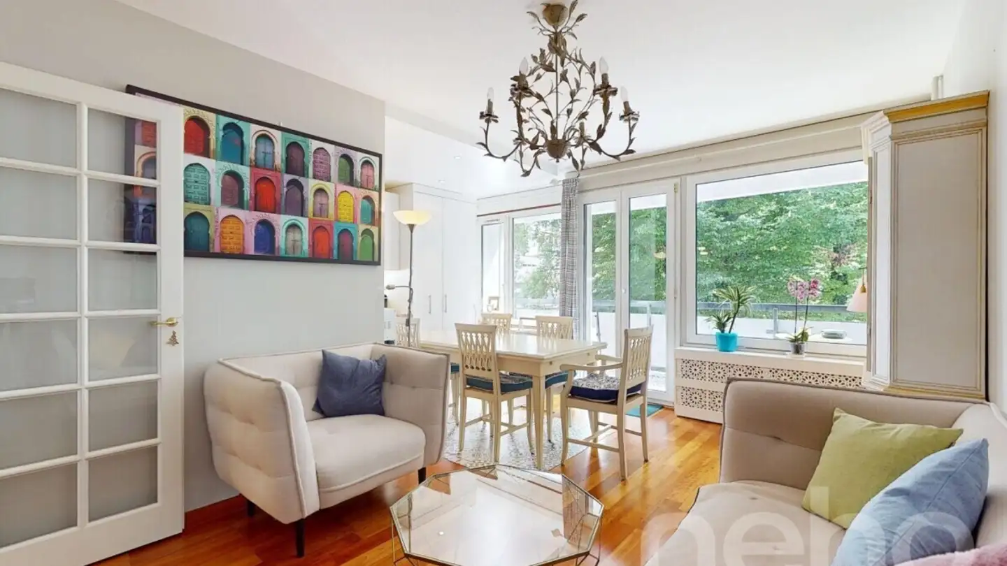 Con una superficie PPE di 57,50 m², questo appartamento di 3 stanze situato al piano terra è composto come segue: