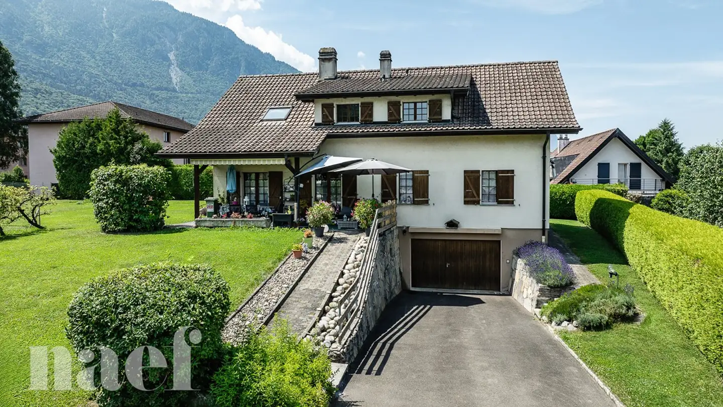 Immersa in un contesto tranquillo tra il Lago di Ginevra e le montagne, questa magnifica villa contemporanea offre un'arte di vivere rara, a pochi minuti da Monthey, Aigle e dalle stazioni sciistiche del Vallese.